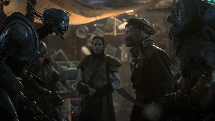 Еще больше погрузиться в атмосферу таинственной планеты с диковинными технологиями, ворчливыми дроидами и опасными пиратскими портами актерам помогали практические эффекты. «Огромная техническая база и богатая экосистема Lucasfilm дала нам доступ к их наработкам. С воплощением идей нам помогала команда дизайнеров Дага Чианга, которая воплощала каждый наш набросок на салфетке и едва уловимую каждую фантазию в сто раз круче, чем мы сами могли бы себе вообразить», — восхищается работой Уоттс. При этом важно, что кураторы звездной вселенной на ТВ Дэйв Филони и Джон Фавро поддержали коллег, если они хотели сделать все по старинке, как было заведено в Industrial Light & Magic. То есть если они запрашивали аниматронных кукол, модельки и миниатюры, они их получали. Так что «Опорная команда» — это еще и трудоемкое сочетание современных технологий вроде The Volume и давно прижившегося в индустрии мэтт-пейнтинга (дорисовки). Причем если задействование лучших кадров в каждой области означало приглашение к работе мастера, который ушел на пенсию, студия шла и на такой шаг.