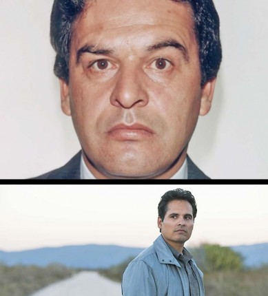 Задолго до того, как он получил прозвище Крестный отец, Феликс Гальярдо действительно работал полицейским. Однако он бросил свою законную карьеру и с помощью Рафаэля Каро Кинтэро (Теноч Уэрта) и Эрнесто Фонсеки Каррильо (Хоакин Косио) сформировал картель Гвадалахары, продавая сначала марихуану, а затем кокаин в Соединенные Штаты в невероятных количествах. Многие подробности его прихода к власти точно воспроизведены авторами «Мексики», включая связи с колумбийскими наркобаронами и взятки, которые он давал чиновникам, чтобы так долго оставаться у власти. Тем не менее одна любопытная деталь, кратко упомянутая в середина сезона, выдумана.